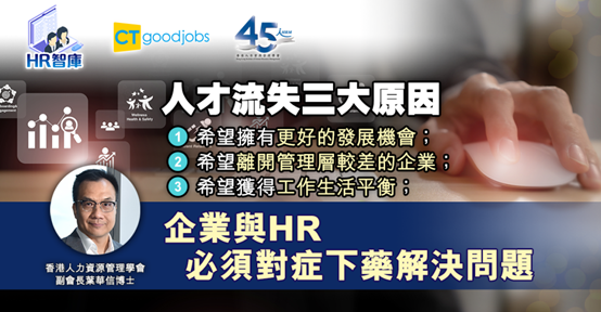 對於人才嚴重流失,香港人力資源管理學會副會長 葉華信博士(Barry)表示,因為環球政治經濟不穩所致。「公司決定請人與否,取決於對前景預測,但現時宏觀經濟氣氛緊張,加上戰爭、能源費用等因素,令公司對未來前景有保留,另一方面,人才的技能亦未能達到企業要求,導致企業難以找到合適人才。」