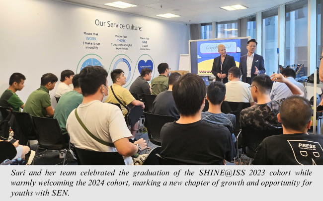 With a spirit of excellence and a commitment to learning from experience, ISS launched additionally its 1st  SHINE internship programme in 2023 in collaboration with the VTC Shine Skills Centre. The programme aims to enable SEN youths to gain valuable work experience and develop their skills as they complete their apprenticeship.