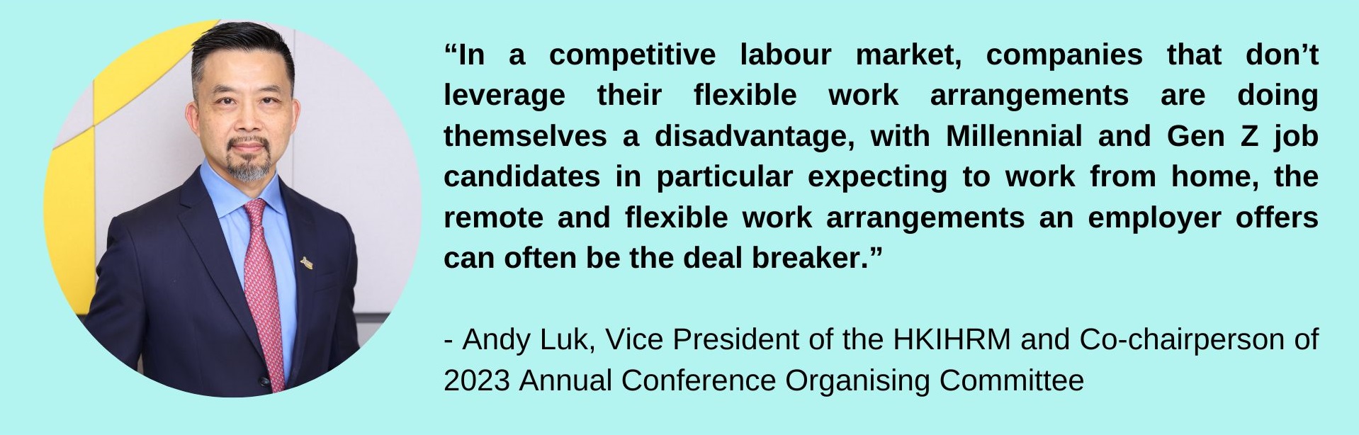 Referring to the presentation made by Dr Allan H. Church, Co-Founder and Managing Partner Maestro Consulting, LLC, who is widely recognised as a thought leader in the field of talent management, without referring to Hong Kong specifically, informed attendees that research shows many organisations are missing an employee engagement opportunity by the flexible work arrangements they offer. “In a competitive labour market, companies that don’t leverage their flexible work arrangements are doing themselves a disadvantage,” Luk notes. With Millennial and Gen Z job candidates in particular expecting to work from home, the remote and flexible work arrangements an employer offers can often be the deal breaker.