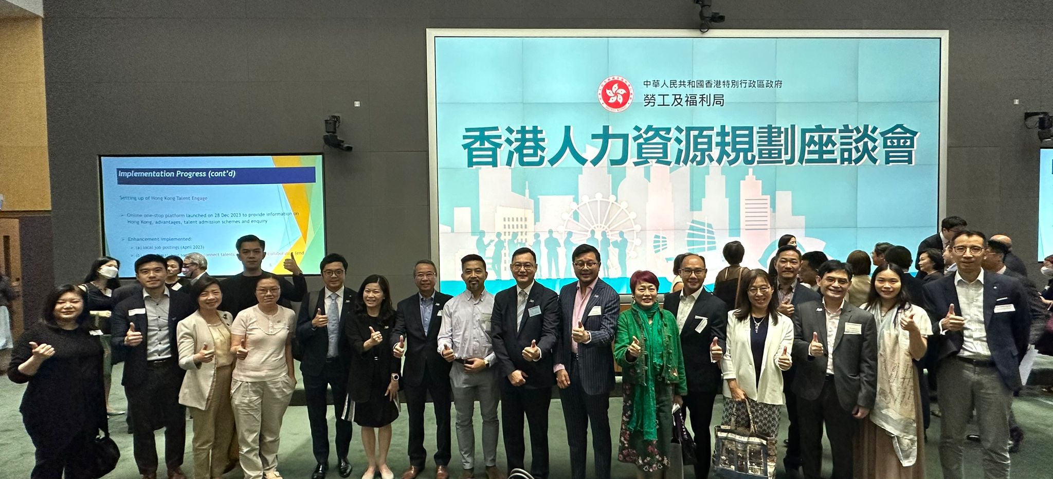 Lawrence Hung, President of HKIHRM, Vice Presidensts and members of HKIHRM attended the Hong Kong Human Resources Planning Symposium organised by the Labour and Welfare Bureau. This event brought together over 30 HR members from various industries, along with other participants, to learn about the latest developments on the talent planning initiatives.